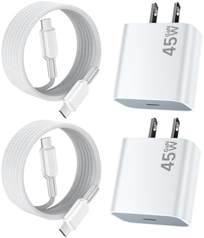 -33%Accessories, Cell Phones & Accessories, Chargers & Power Adapters, Wall ChargersDual Pack 45 W USB-C Fast Charger with 6.6 FT Braided Cables – Ultimate Charging Solution for i Phone 16 Series and Android Devices – Superior Speed, Enhanced Durability, and Unmatched Compatibility for Home or Travel Charging Needs